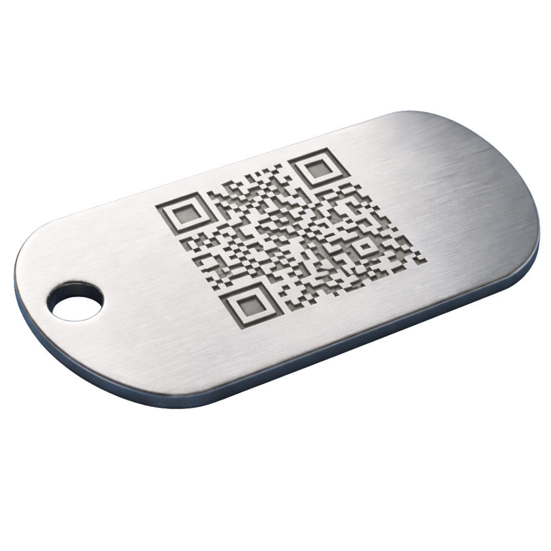 Medaglietta MedicalIdentity in metallo incisa al laser. Inquadrando il QR code si apre la tua cartella clinica digitale con le informazioni mediche essenziali consultabili in caso di emergenza.